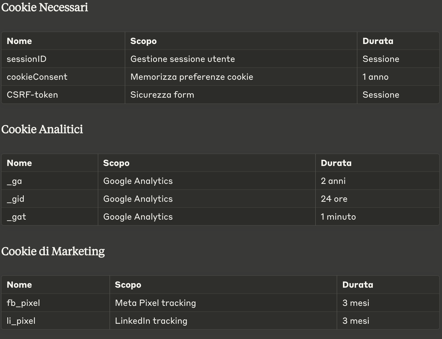 I dati raccolti attraverso i cookie vengono utilizzati per:
